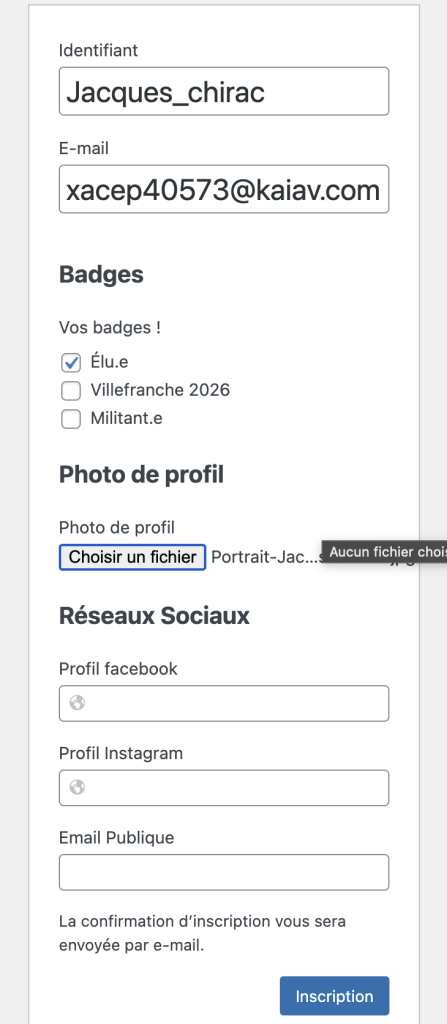 Saisissez vos informations, un mail de confirmation vous sera envoyé pour confirmer votre inscription, c’est le moment aussi d’ajouter une photo vous représentant. Vous pourrez toujours y revenir plus tard dans votre profil.